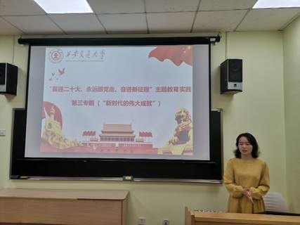 最后,博2237班团支部书记孙灏同学带领大家开展了“喜迎二十大、永远跟党走、奋进新征程”主题教育实践学习活动,重点学习了“新时代的伟大成就”,重温了十八大以来国家的改革发展,激发了同学们的爱国热情和时代使命感。