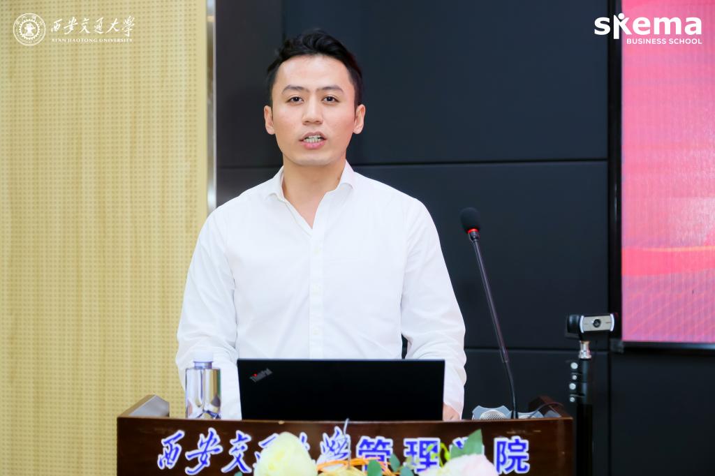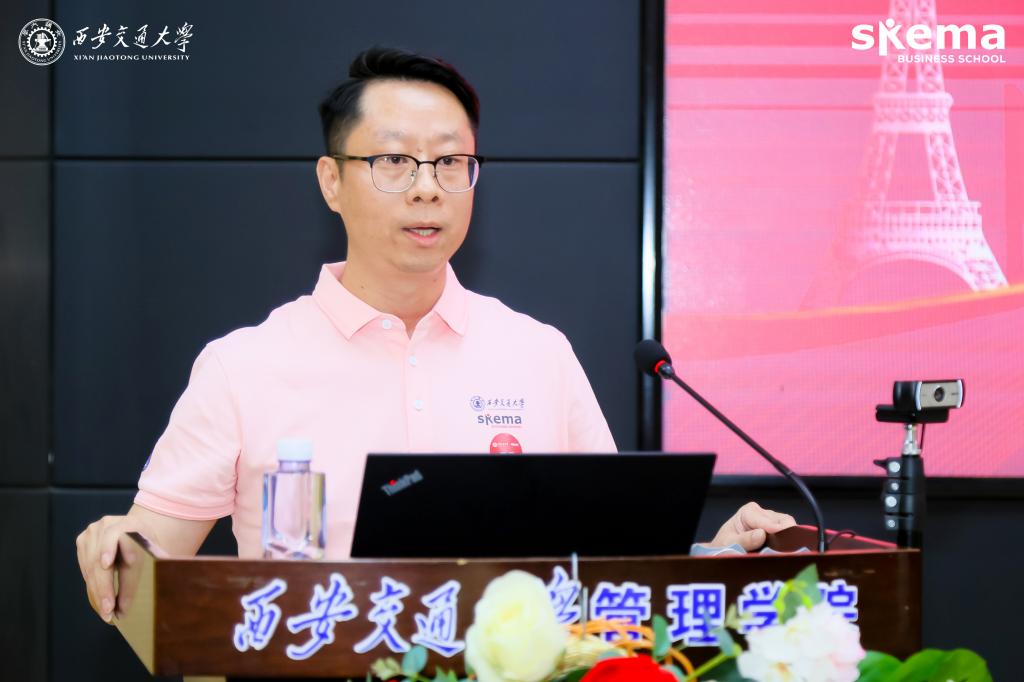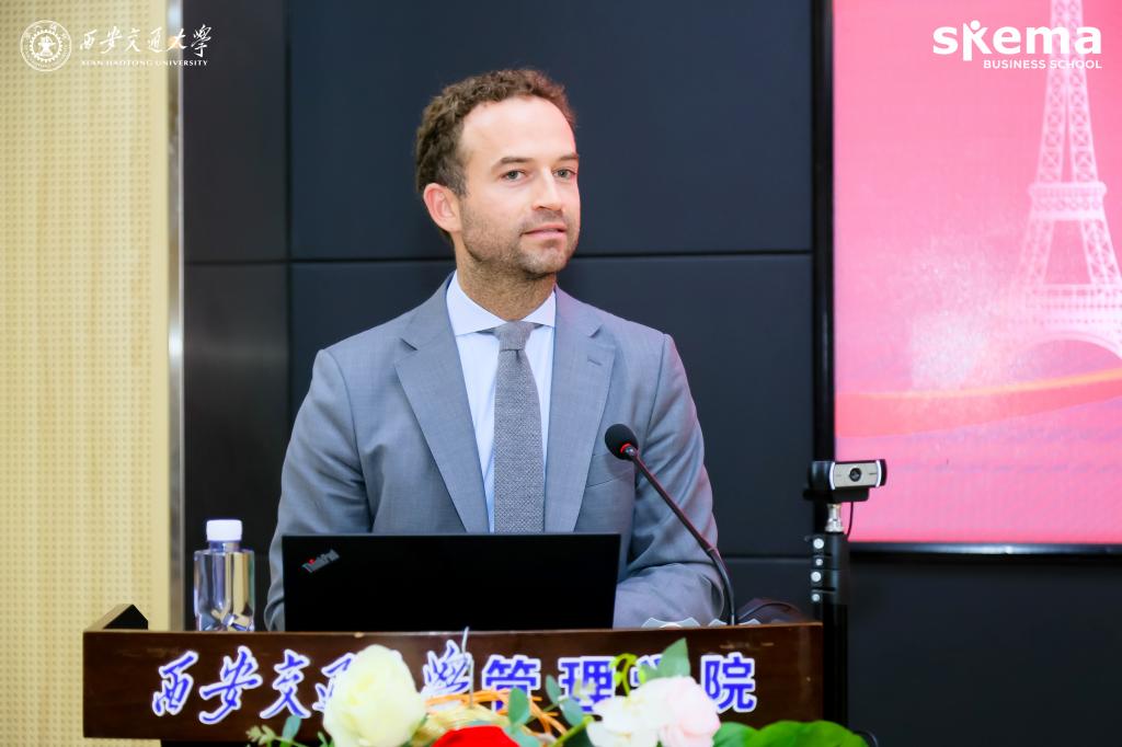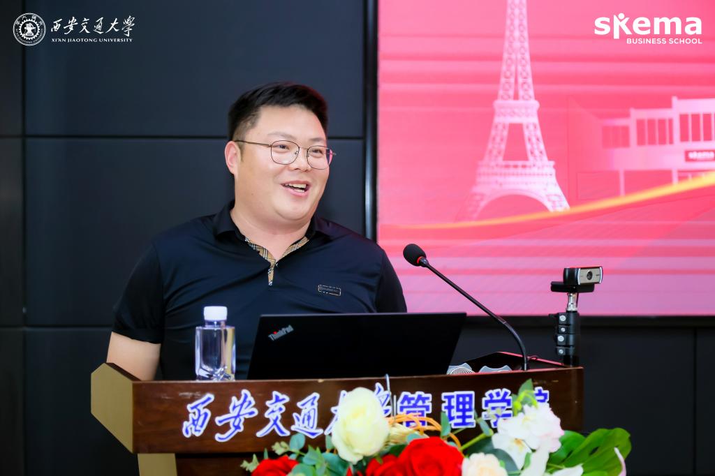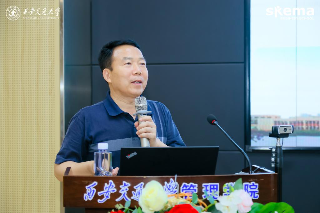 The School of Management of Xi’an Jiaotong University hosted the 2023 opening ceremony for joint Master of Science Program in Entrepreneurship and Innovation (Big Data and Artificial Intelligence Management) between XJTU and SKEMA Business School on September 15 in Xi’an. Ma Xiaobin, Secretary of the School of Management Party Committee, Liu Wenfeng, Director of Department of International Cooperation and Exchanges, Zhang Yan, Associate Director of Department of Continuing Education, Tian Gaoliang, Associate Dean of the School of Management, and Patrice Houdayer, Vice President of SKEMA Business School, Matthieu Dumont, Director of SKEMA Suzhou Campus, Nicolas Servel, Director of the MSc Entrepreneurship & Innovation Program of SKEMA, XU Liang, Academic Director of the Joint Program in China, represented Xi’an Jiaotong University and SKEMA Business School respectively, attended the ceremony and delivered speeches to celebrate the exhilarating brand new study journey for the fourth cohort of the joint MSc program students. The opening ceremony was hosted by Professor Shu Chengli, Assistant Dean of the School of Management and Director of the Center for International Programs.