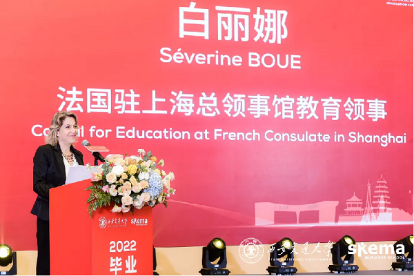 The commencement ceremony for 2022 graduates of the cooperation program – Master of Entrepreneurship and Innovation (Big Data and Artificial Management) – of Xi'an Jiaotong University and SKEMA Business School (a French university) was held recently, attended by leaders of the two universities, teaching faculty and the program management team.
