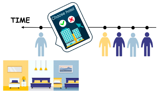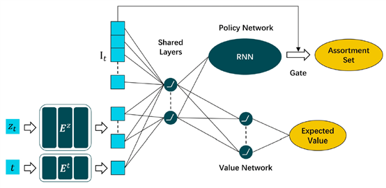 在线选品优化(Online assortment optimization)是近年来运营管理领域中备受关注的重要研究方向。其核心在于探讨平台如何从有限的产品库存中精心挑选出一组最优的产品组合(即“选品”),并将其推荐给随着时间陆续到达的多样化客户群体,以实现在特定时间段内的平台总收益最大化。众多现实场景,例如酒店预订、演出票销售以及短生命周期产品的推荐等,均可被建模为在线选品优化问题。然而,现有主流模型驱动方法(如离散选择模型)的模型假设通常存在局限性,与真实用户行为不符,且在相应的高维动态规划问题求解中计算代价显著。