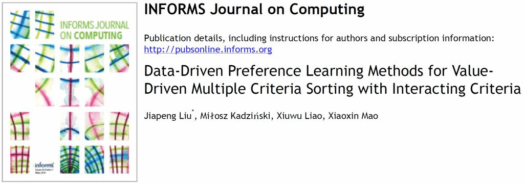智能决策与机器学习研究中心廖貅武教授和刘佳鹏副教授团队针对多准则分类决策问题,利用决策分析和机器学习的理论和技术,提出了一种数据驱动的偏好学习方法,可以从数据中自动构建出兼顾分类性能和模型可解释性的决策模型,能够有效帮助决策人员提高决策质量和效率。该方法可以应用于信用风险管理、消费者洞察、智慧诊疗等领域,为开展数据驱动的智能决策提供了一种应用范式和实践工具。