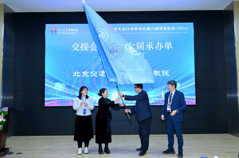崔永梅教授、张姗姗教授交接了交大会计合作论坛会旗。