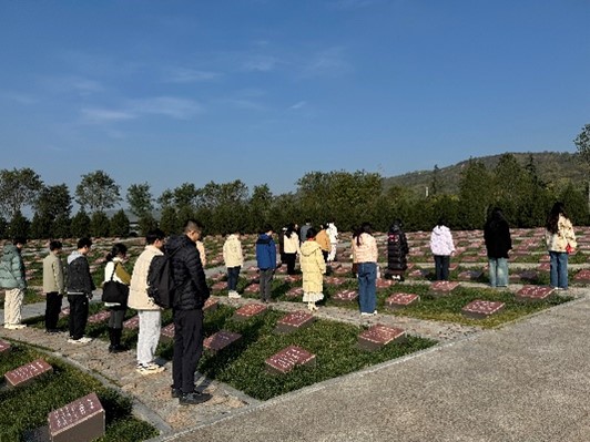 随后,全体人员来到烈士墓碑前,怀着无比崇敬的心情,向烈士们默哀致敬,为烈士扫墓。在默哀过程中,每个人都陷入了深深的沉思,仿佛能听到革命先烈们为国家和民族解放事业英勇奋斗、流血牺牲的呐喊声。同学们深知,今天的幸福生活来之不易,是无数革命先烈用鲜血和生命换来的,更加意识到继承和发扬革命传统,坚定理想信念的重要性。