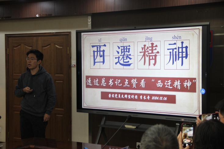 随后,崇实书院党员先锋宣讲团李长奇向大家作以“透过总书记的点赞看“西迁精神”为主题的宣讲。