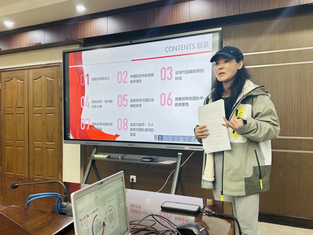活动尾声,支部书记耿葳总结此次读书分享会的核心内容,强调了党建思政与自我修养的深度融合对于个人成长和团队建设的双重价值。她指出,自我修养不仅是党员自身修为的重要体现,也是推动团队和组织不断前行的内在动力。