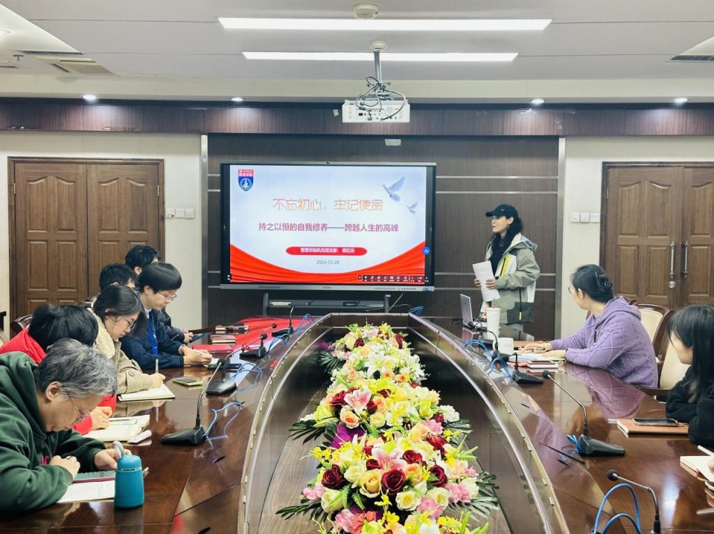 机关党支部举办了一场以“不忘初心、牢记使命”党建思政教育为主题的支部组织生活会。蒋红琰老师以“加强自身修养,提高党员意识”为题展开读书分享,活动不仅丰富了党员们的思想认知,更激发了大家在个人成长与团队合作中的新思考,成为机关支部思想建设的重要内容之一。