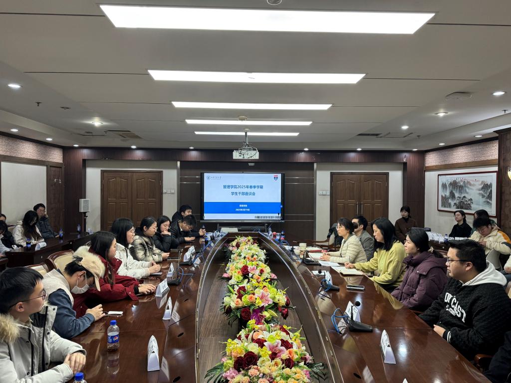 于2月19日举办新学期全体本硕博学生干部座谈会。学院党委副书记叶宁、研究生辅导员李明睿和胡瑛出席本次座谈会。会议由李明睿主持。