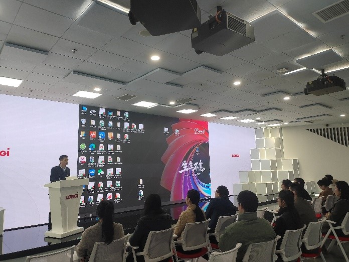 以及工业工程与运营管理系的发展历程、学科建设及人才培养等成就,强调工业工程是工程与管理的结合,多年来在智能制造和绿色能源等领域研究取得了显著成果,希望能发挥双方优势,围绕“产教融合、科教融汇”积极开展校地、校企合作。教师代表王楷、史思雨结合在隆基的参观体会,分别介绍了个人研究方向和相关合作意向,鼓励同学们积极投身国家关键领域,为发展新质生产力贡献力量。