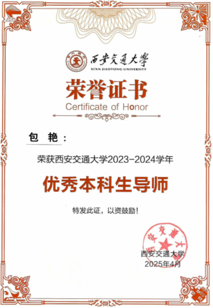 2023-2024学年优秀本科生导师”荣誉称号。这是自2022年学校实施本科生导师制以来,a漫