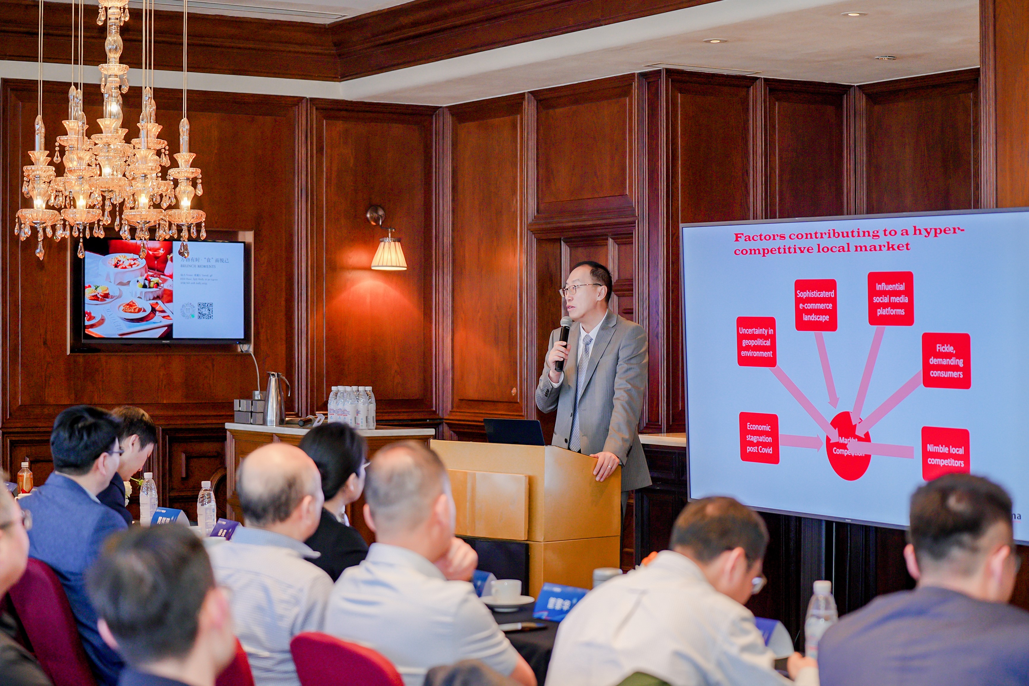 SKEMA商学院中国区学术校长窦文宇教授代表法国 SKEMA 商学院,向莅临现场的嘉宾与观众致以诚挚欢迎,期望大家借此深入了解项目,共同开启学术之旅,为个人职业发展与全球商业创新添力。随后,窦文宇校长为大家带来了一场题为《国际品牌在海外市场激烈竞争中的制胜之道——以中国新消费环境为例》的国际前沿讲座。通过生动的案例分析、深入的理论探讨以及前瞻性的视角,详细阐述了在当前中国高度“内卷”的新消费环境下,国际品牌可以通过深刻洞察当地文化与消费者心理、强化数字化转型能力、提升动态学习能力,并制定行之有效的营销战略框架,从而在激烈的市场竞争中占据优势地位,实现可持续发展。