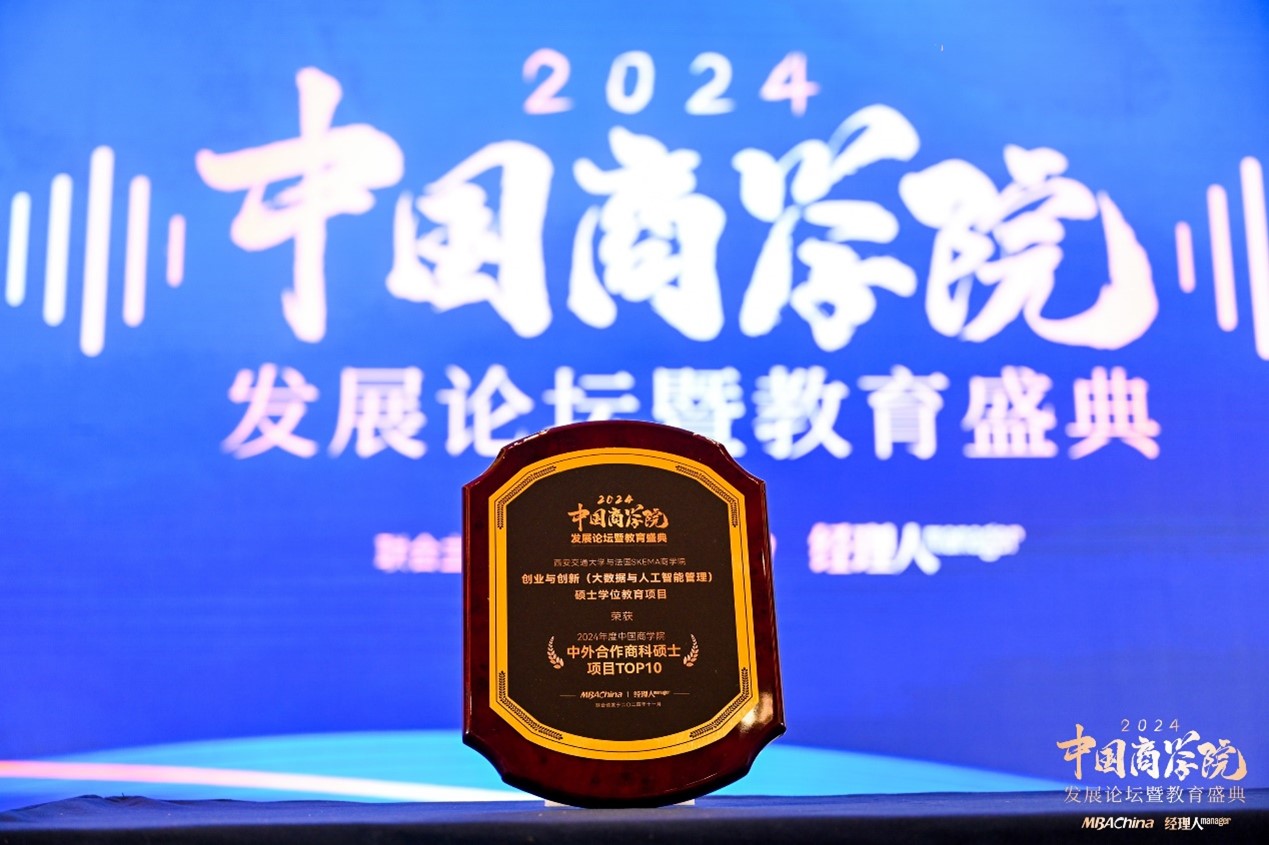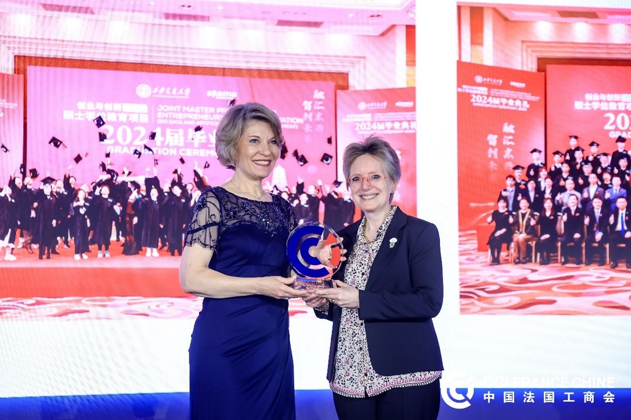 与法国SKEMA商学院合作举办的创业与创新(大数据与人工智能管理)硕士学位教育项目荣获中国-法国工商会颁发的“中法创新与合作大奖”,成为中法教育合作领域的标杆典范。这一殊荣不仅是对两校十年合作成果的高度认可,更彰显了双方在推动全球商科教育创新、服务数字经济发展中的卓越贡献。
