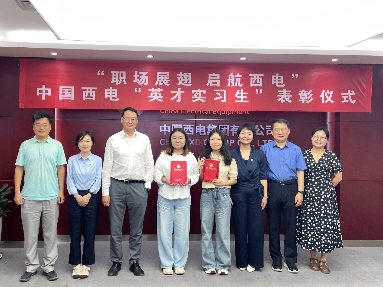 和中国西电提供的实践平台表达诚挚的感谢。最后,由赵琰副部长和张俊瑞教授为优秀实习生颁发荣誉证书并合影留念。