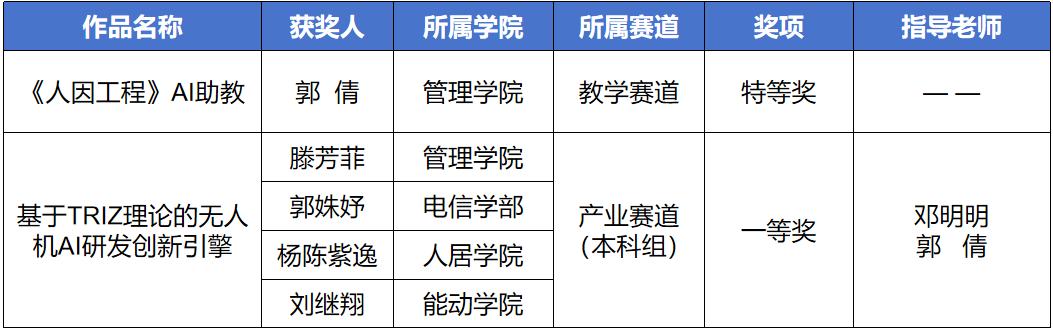 学生担任组长,电信学部、人居学院与能动学院本科生共同组成的跨学科学生团队,荣获产业赛道本科组一等奖;充分展现出我校在推动人工智能与教育教学融合、促进学科协同育人方面的积极探索。