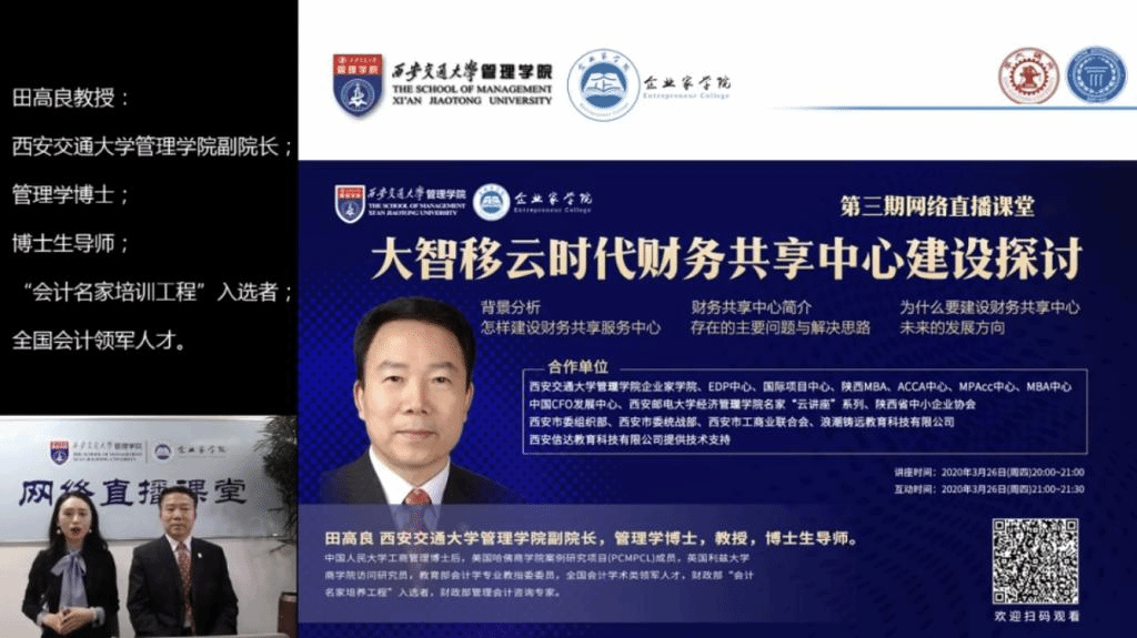 在互动交流阶段,大家纷纷就工作中遇到的具体财务问题和民营、小微企业如何实现财务共享等进行提问,田高良教授分别作了解答。直播间气氛热烈,好评不断。课后,很多参加线上直播的人员希望今后多办一些网络直播培训,让大家有机会能够接受更多更前沿的技术知识,助力我们西安经济发展。