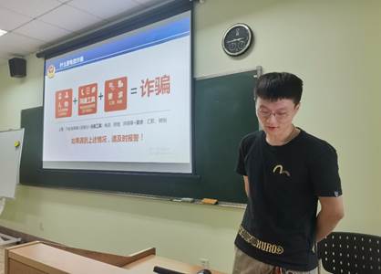 7月22日在兴庆校区文管大楼132室举办“关于做好严防校园电信诈骗和宿舍安全工作”推进会。学工办胡瑛、兼职辅导员许彪、马舒毅和各班班长参加活动。首先由许彪为同学们做防范电信诈骗的宣讲。他从什么是电信诈骗和电信诈骗的常见形式展开报告,列举了刷单诈骗、网络购物诈骗、奖、助学金诈骗、冒充领导诈骗、办理信用卡、信贷诈骗等典型的电信诈骗形式,既总结了不同的诈骗类型,也敲响了防范的警钟。
