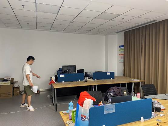 检查人员工作认真,态度诚恳,同学们积极配合,氛围和谐融洽。经过分组检查,创新港大部分教研室公共卫生整洁、良好,少数长期闲置工位桌面堆放的物品较多且杂乱,需要相应教研室的同学共同整改和维持。大多数宿舍地面清洁干净,桌面物品摆放整齐,床铺整洁,宿舍卫生状况良好。所有教研室和宿舍均未发现乱拉电线,使用违章电器的情况。