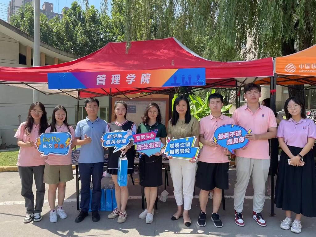 8月31日,在兴庆校区南门a漫 迎新点,9名星航班学员身着管院院服,在学院老师的指导和带领下,全身心投入迎新工作,他们井然有序地引导新生报到、发放大礼包、协助拍照打卡,为同学们记录下成长路上这一特殊时刻。