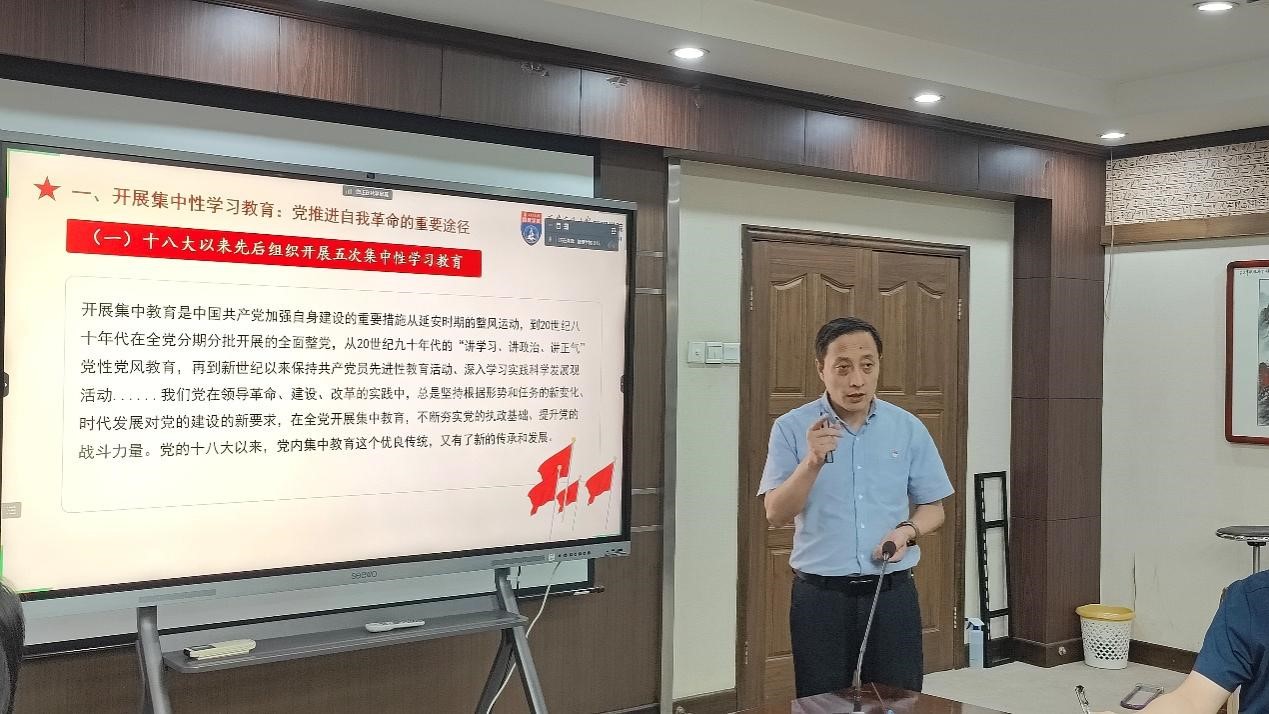 会议首先以凝心聚力新征程,强国建设需担当为主题,a漫 党委书记马晓彬做学习贯彻习近平新时代中国特色社会主义思想主题教育专题党课。马晓彬书记回顾了我们的党开展集中性学习教育的历史,指出了开展学习贯彻习近平新时代中国特色社会主义思想主题教育的总体要求,特别是要聚焦七大着力点,切实增强开展主题教育的政治自觉思想自觉行动。马书记强调了要深刻理解“以学铸魂”“以学增智”“以学正风”并以主题教育为指引,作为机关支部党员,如何谱写学院高质量发展新篇章。