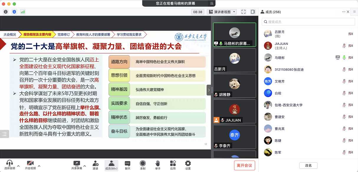 党委书记马晓彬主讲,全院师生党员通过腾讯会议在线学习。