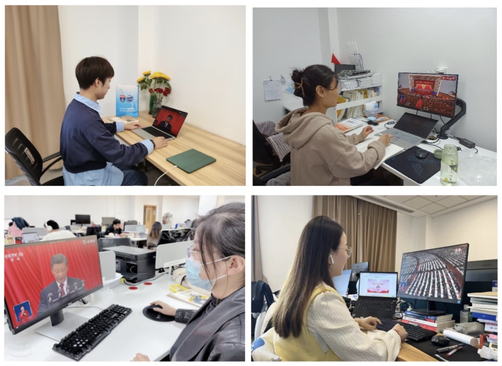 全体师生喜迎盛会。在教室,在办公室,在家里,在学习工作间隙……大家认真收听收看开幕会直播的热烈场面。习近平总书记所作的大会报告凝聚人心、催人奋进,大家纷纷表示,在迈上全面建设社会主义现代化国家新征程、向第二个百年奋斗目标进军的关键时刻,要继续坚定不移跟党走,坚持走中国特色社会主义道路,以中国式现代化推进中华民族伟大复兴。