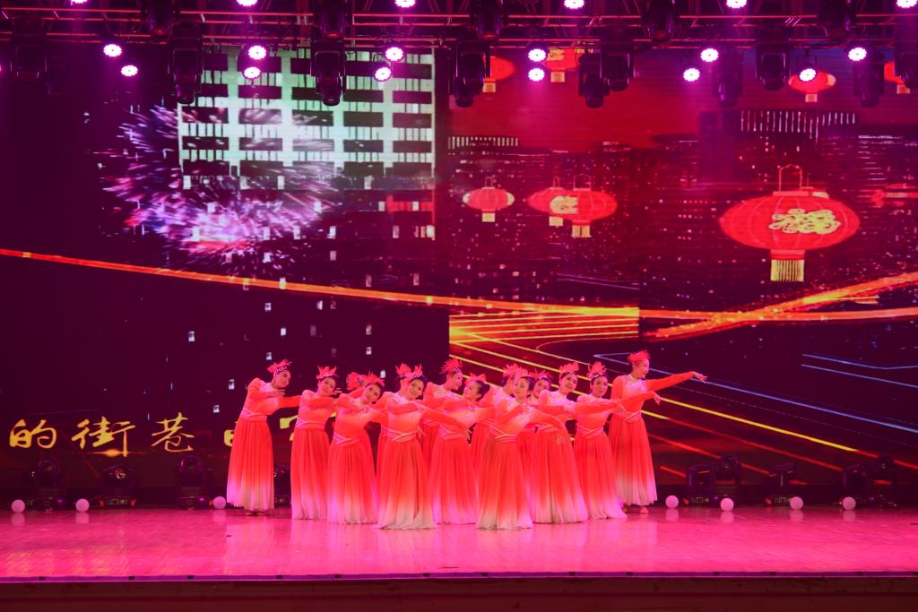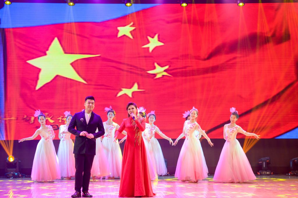 研究生和西安市税务局组合的开场歌舞《唱支山歌给党听》中,演出拉开帷幕,绚烂的光影、美妙的舞姿、动人的歌声唱响出对党的热爱之情。