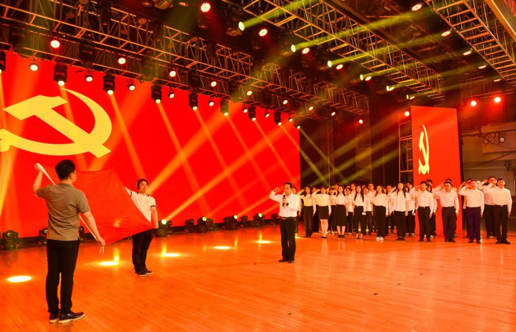 党委书记马晓彬同志的带领下,面向党旗庄严宣誓,坚定理想信念、牢记初心使命。