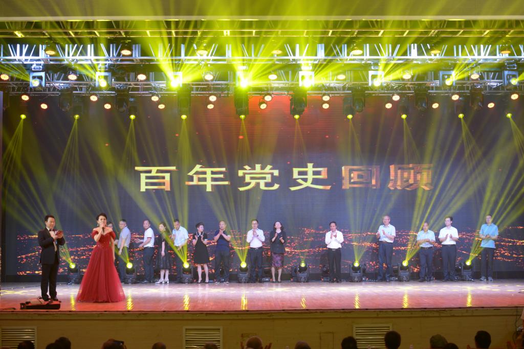演出开场前,出席活动的领导和嘉宾登台开启百年党史回顾短视频,在场师生共同循着历史时间线,回望百年奋斗历程,展望未来光明前景,深刻感受到一百年前中国共产党成立时的艰辛和喜悦。一百年来,中国共产党带领中国人民披荆斩棘、拼搏奋进,从站起来,到富起来,到强起来,历尽艰辛,创造千秋伟业。百年大党,风华正茂!
