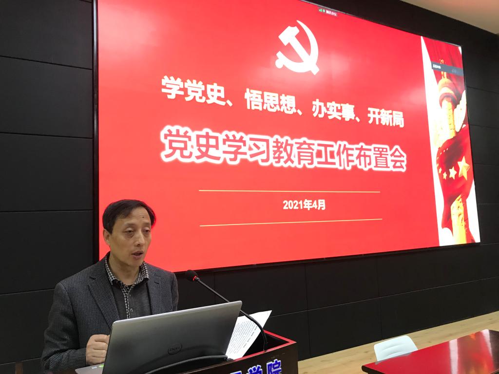 党委在517报告厅召开“学党史、悟思想、办实事、开新局——党史学习教育工作布置会”,深入学习贯彻习近平总书记在党史学习教育动员大会上的重要讲话精神,贯彻落实学校党委关于党史学习教育的工作要求,对全院开展党史学习教育进行动员布置,引导全院师生党员学史明理、学史增信、学史崇德、学史力行,奋力开创学院发展建设新局面。院党委书记马晓彬主持会议并做布置讲话。全体党政领导干部、师生党员参加会议。会议特邀马克思主义学院陆卫明教授为全体师生党员做党史学习教育专题报告。