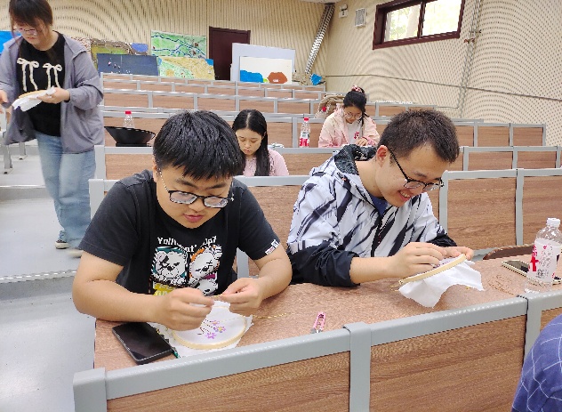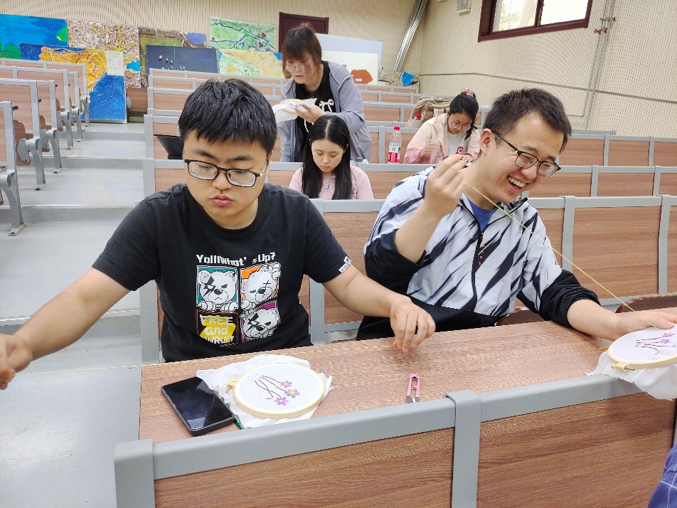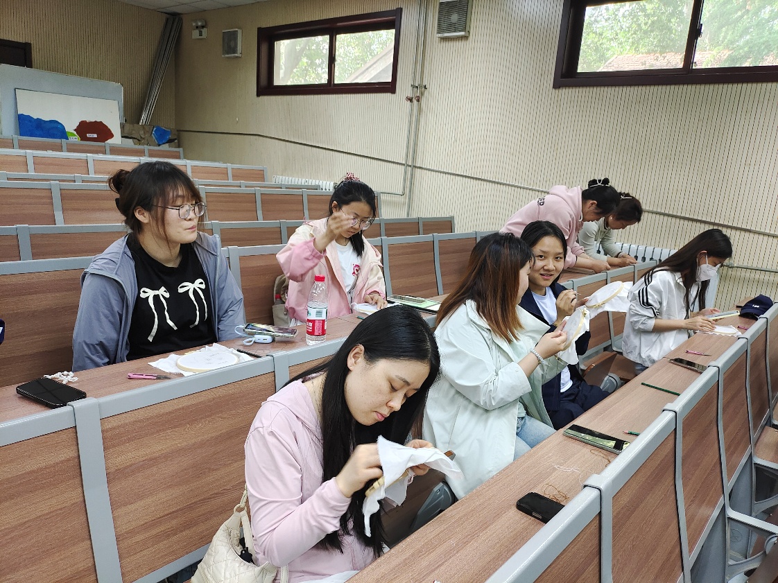 老师们在活动中不仅传授刺绣技艺,还贴心在大家刺绣时,默默地用备用针给同学们穿上下一个流程要用的线,帮助大家加快刺绣进度。在老师的耐心指导下,同学们逐渐掌握了各种针法的精髓,手中的作品也逐渐成型。活动现场充满了欢声笑语,同学们在交流刺绣心得的同时,也增进了彼此之间的友谊。