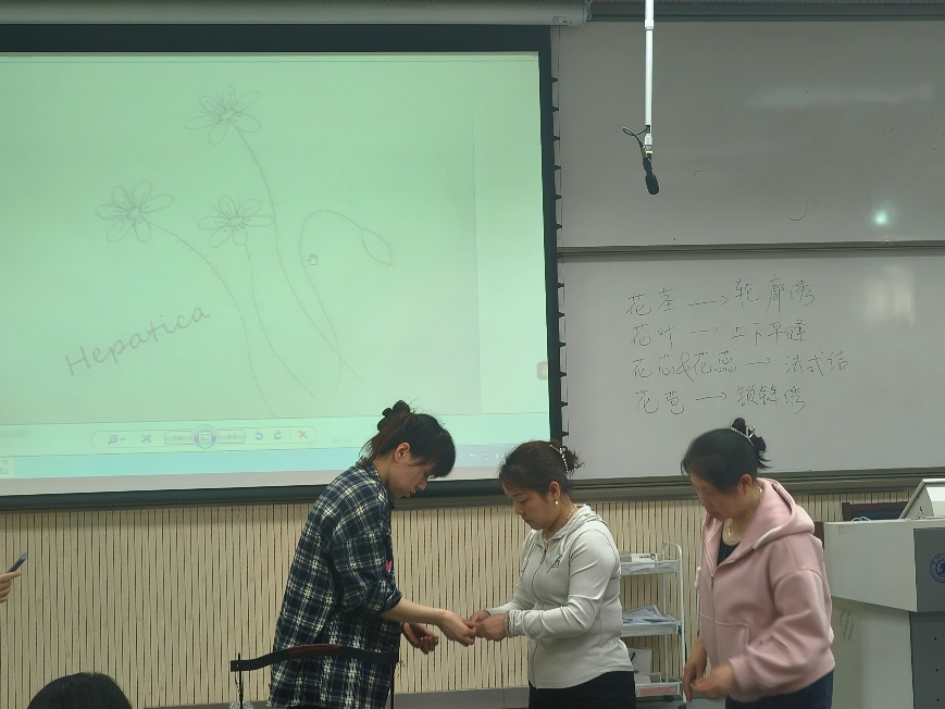 活动现场,同学们在老师的悉心指导下,开启了这场别开生面的刺绣之旅。轮廓绣用于勾勒花径,大家小心翼翼地将针线穿梭于绣布之上,力求线条流畅、清晰,缓缓勾勒出细密的花径;缎面绣则用来绣制花瓣,同学们通过针法的变换,使花瓣呈现出柔和的光泽与饱满的质感;法式结被巧妙地运用于绣制花芯和花蕊,同学们在老师的指导下,熟练掌握了法式结的技巧,一个个精致的法式结仿佛是花朵的点睛之笔,让整个花朵图案更加生动逼真;锁链绣则用于绣制花苞,同学们手中的针线仿佛被赋予了生命,一针针锁链绣出的花苞,仿佛即将绽放,充满了生机与活力。