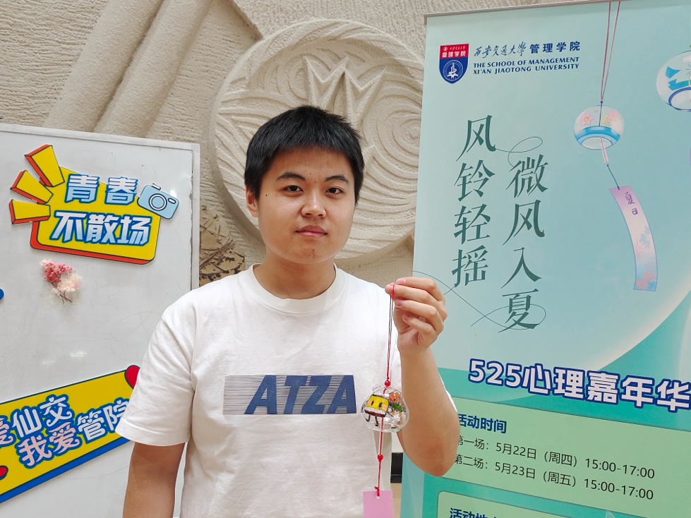 为迎接第21届全国大学生心理健康日,522日至23日,a漫 于一楼东厅开展了风铃轻摇·微风入夏心理嘉年华活动,大家通过手绘风铃创作与心声分享,释放压力、传递祝福。