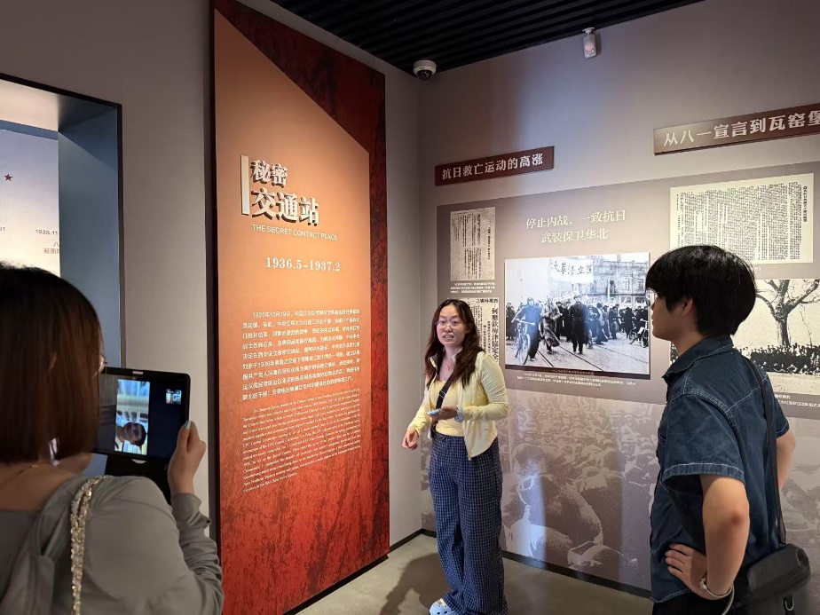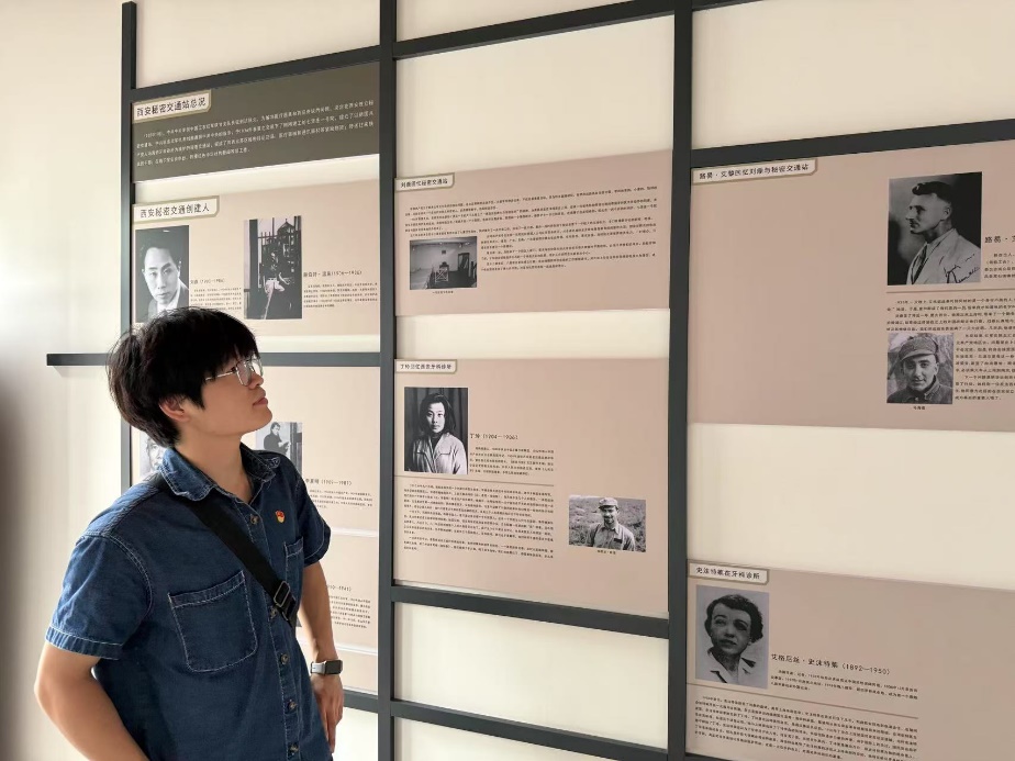 参与本次活动的15名青年党员来自学院五个基层党支部:24级管科硕士支部、24级工商管理硕士支部、24级会计硕士支部、工业工程博士第二支部以及会计博士支部。西安方面,在岳姝蓉同志的带领下,成员们依次参观纪念馆的接待室、救亡室、机要室等历史场景,通过300余件珍贵文物、800余张历史照片和大量文献资料,系统学习抗战时期中国共产党在国统区开展统战工作、推动抗日救亡运动的光辉历程。