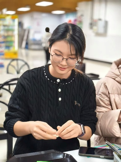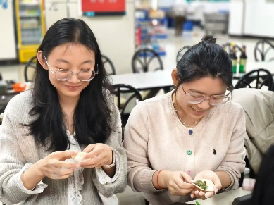 活动现场暖意融融,馅料鲜香扑鼻,整齐码放的饺子皮、丰富的馅料与齐全的工具,让师生们迅速投入创作。大家包饺子的手法各具特色:有人娴熟地捏出柳叶状的精巧饺子,皮薄馅足、造型雅致;有人手速惊人,一折一捏间,一个个圆鼓鼓的元宝饺便整齐排列;还有同学虚心向旁边同学请教包饺子技巧。欢声笑语中,一张张饺子皮变身成形态各异的美味雏形。