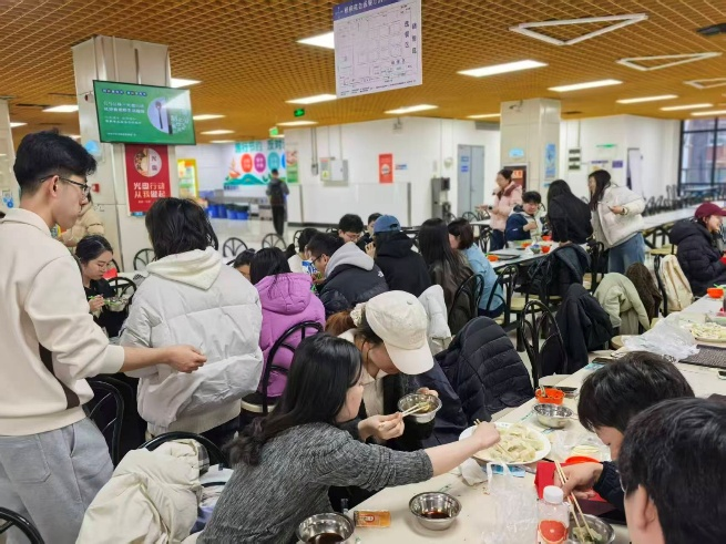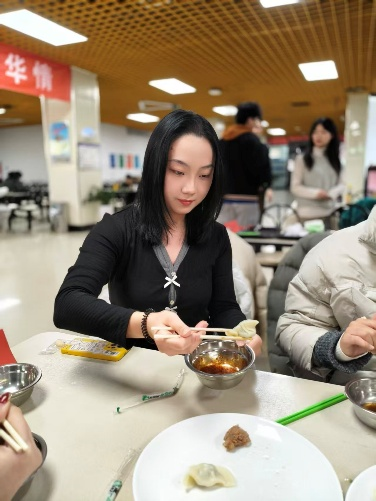 一盘盘热气腾腾的饺子被陆续端上桌,形态各异的饺子在碗中冒着热气,裹挟着鲜香气息扑面而来。师生们围坐一桌,分享着亲手包的饺子,咬下一口,鲜香的汤汁在口中迸发,满是劳动的喜悦与团圆的暖意。