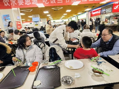“冬至知识问答”环节为温馨的品尝时光增添了别样乐趣。主持人接连抛出关于冬至习俗、节气常识、诗词典故的问题,同学们踊跃举手、争相抢答。热气蒸腾与欢声笑语间,节日气氛被推向高潮。