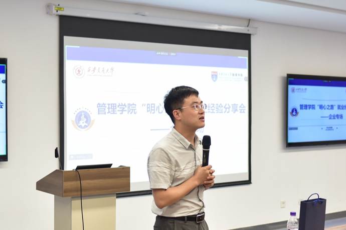 最后,李明睿老师进行了总结,对以上6位同学的精彩分享表示了感谢。他谈到,2019级学生作为创新港向社会输送的第一批毕业人才,对大家的就业情况表示很欣慰,也对同学们即将离开学校表示不舍。同时,他提醒低年级的同学们在职业规划上要及早打算,找到属于自己的人生之路,在社会的各行各业发挥出我们西安交大管院学子应有的风采。
