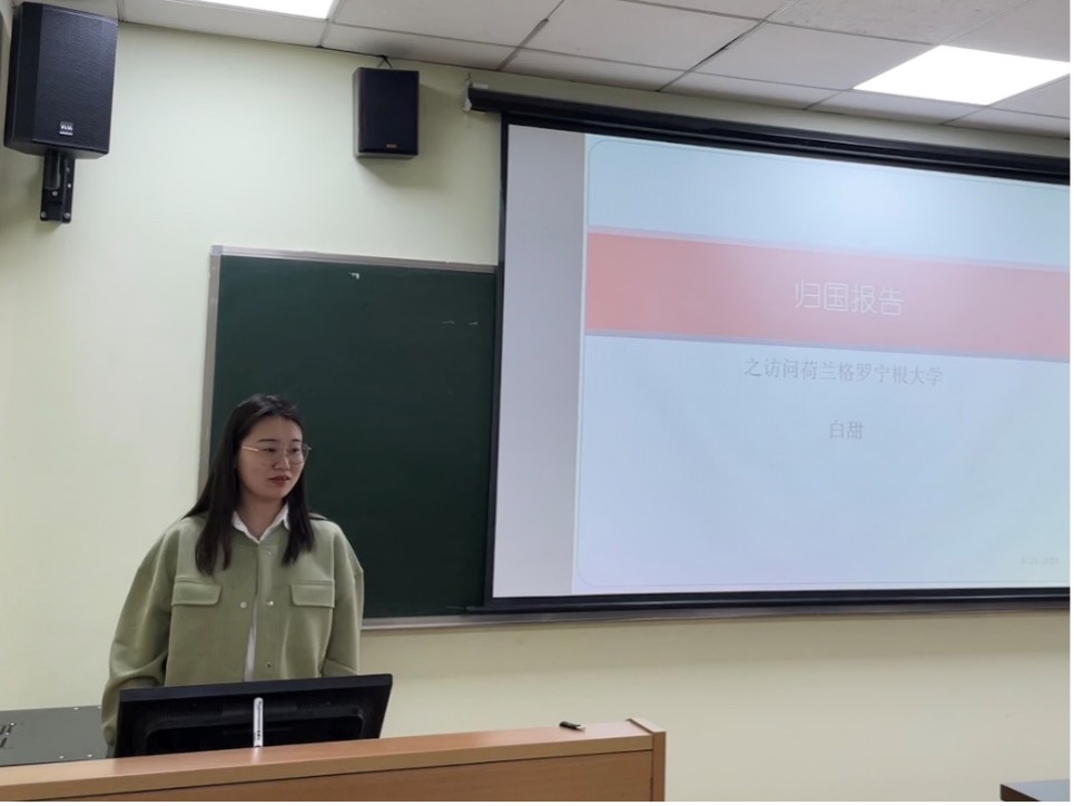 到荷兰格罗宁根大学参加联培项目的白甜同学也是从生活和学习两个角度入手,从荷兰的文化和地理特点出发,分享了很多在荷兰经历的有趣故事。白甜认为留学既能开拓视野、领略不同文化,又能结识很多朋友,还能获得独立生活的技能和处理事情的能力。她建议大家早规划、早准备,不要害怕被拒,积极联系外导。