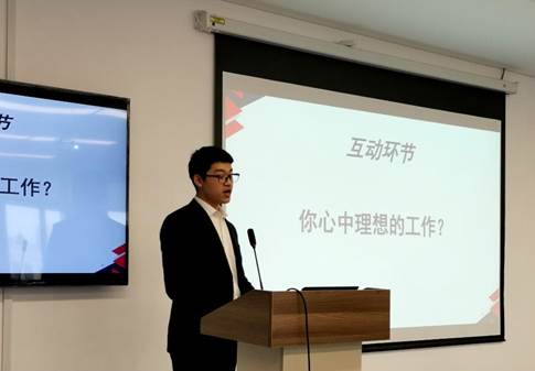夏雨学长与同学们进行互动,了解同学们的就业意向和理想中的工作和企业,并结合自身的实习工作经历从职业发展道路、工作价值感、工作稳定性、同事关系等角度给出自己的看法,给同学们在择业时提供更多角度和思考。他提醒同学们要用辩证和发展的眼光考虑自己的就业选择,同时也要注意工作与生活的平衡。