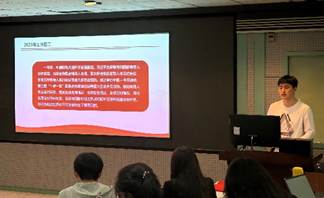 首先,戴宇明同学以2024年“学习两会精神,汲取奋进力量”为主题,从2023年工作回顾、2024年经济社会发展总体要求和政策取向、两会热词等三个方面深入解读了全国两会精神的要求。
