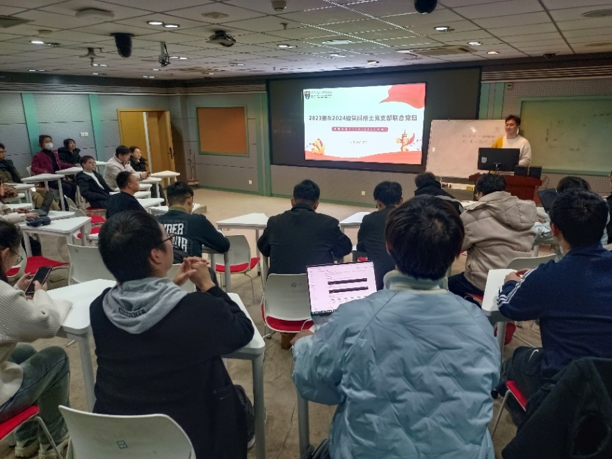 2023&2024级管科硕士党支部共36位党员参加本次党课,会议主持人是2023级管科支部书记戴宇明同志。