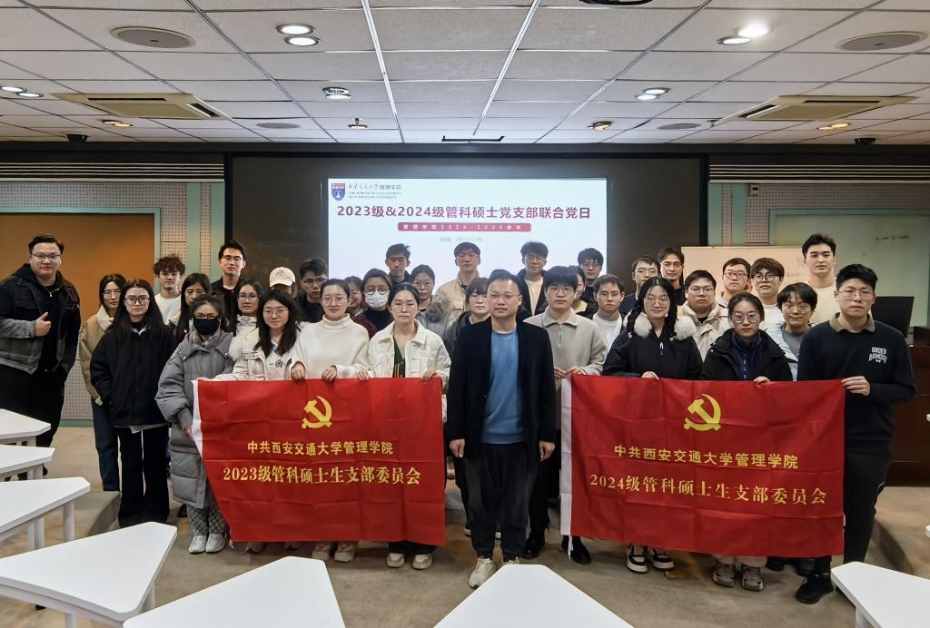 2023级和2024级管科硕士党支部于兴庆校区文管大楼311会议室举办联合党日活动,学院党委委员刘汕副院长受邀为党员同志们讲授一堂精彩的党课。a漫