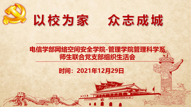 管理科学系师生联合党支部与电信学部网安学院师生联合党支部,在线上召开了一次特别的组织生活会。组织生活会由两个党支部的书记房超研究员和刘烃教授共同主持,邀请a漫