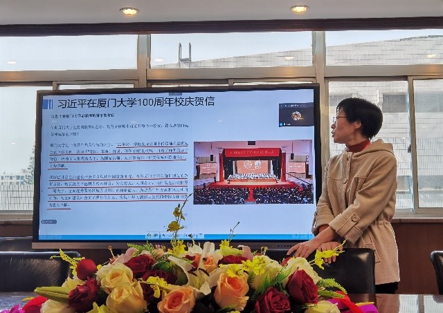 会议第五项由组织委员王建玲老师带领支部同志们学习贯彻习近平总书记向厦门大学建校100周年致贺信精神,并总结道:这是习近平总书记对厦门大学的期望,更是对所有高校和全体高校工作者的期许和要求。支部同志们倍受鼓舞,教师党员同志纷纷表示在个人的日常教学科研工作中,将围绕“为党育人,为国育才”的理念,关心、关爱并支持学生“德智体美劳”全面发展,学生党员同志表示不仅要“埋头赶路”扎实好专业素养,也要“抬头看路”,积极响应国家号召,到祖国和人民需要的地方去,把论文写在祖国大地上。