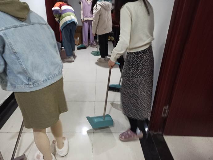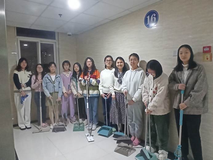 2022级专硕党支部、工业工程与管理班团支部和会计班团支部共同组织了一场学雷锋活动。男女生分别志愿打扫了宿舍楼,共同维护学生宿舍的环境卫生。