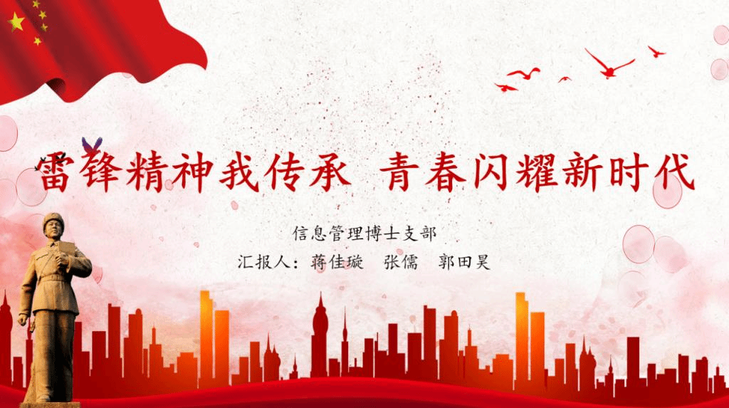 会上,信息管理博士支部书记蒋佳璇讲述了雷锋同志的生平和事迹简介,并带领支部成员深入学习雷锋精神的含义和实质,再次回顾雷锋语录。蒋佳璇同志指出,在新时代雷锋精神的实质和核心是全心全意为人民服务,为了人民的事业无私奉献,它已经成为我们这个时代精神文明的同义语、先进文化的表征。最后,呼吁全体党员同志向雷锋同志学习,在日常生活、学习中更好地发挥党员、干部模范带头作用,把崇高的理想信念和道德品质转化为实际行动,把个人的追求融入到为党和人民事业的奋斗之中,为全面建设社会主义现代化国家、全面推进中华民族伟大复兴凝聚强大力量。