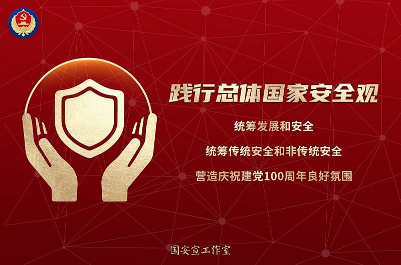 践行总体国家安全观,统筹发展和安全,统筹传统安全和非传统安全,营造庆祝建党100周年良好氛围。