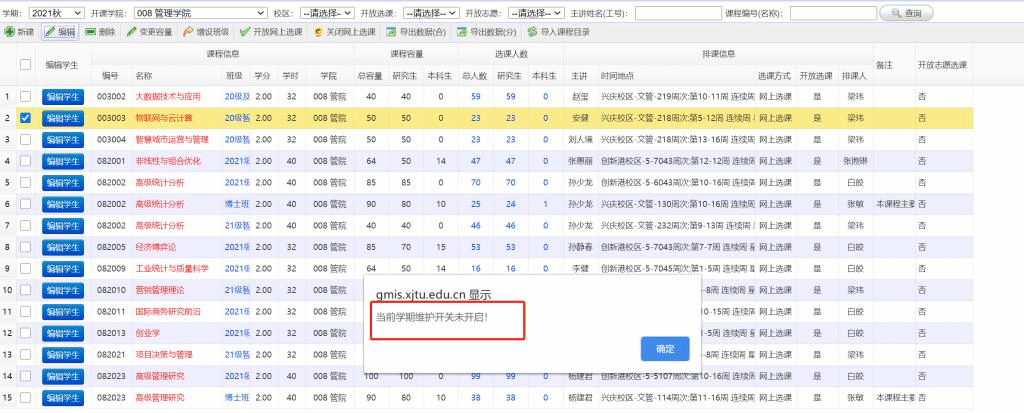 此时学生已开始选课,研究生院会关停教务老师的排课权限,因每位学生的课表都不同,因此无法再整体调整课程。