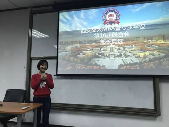 活动以MBA中心郑莉老师如沐春风的讲话开始,郑老师肯定了16届联合会全体成员的工作成绩,同时提出了对即将产生的新一届部长成员的期许。