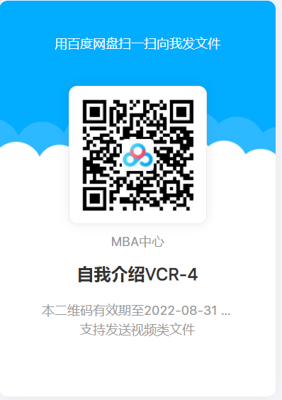 视频提交方式及有效期:视频通过百度网盘提交,格式MP4,大小15M,3分钟以内。有效期截止到2022年8月31日10:50,麻烦在此之前点击以下链接将文件发送给我,支持发送视频格式的文件,感谢~ 链接://pan.baidu.com/disk/main#/transfer/send?surl=ABIAAAAAAA8MpQ