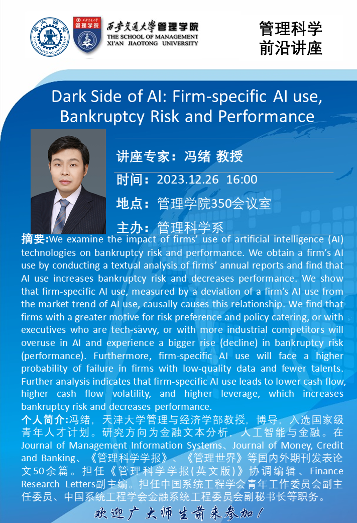 题目:Dark Side of AI: Firm-specific AI use, Bankruptcy Risk and Performance
